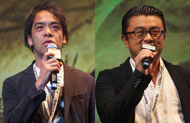 会場の盛り上がりは、期待をさらに上回りました。開始前から会場前は長蛇の列となり、多くのファンが世界で初めて目にする本作を心待ちにしました。およそ1000名収容の会場は若者から大人のファンまでぎっしり埋めつくされ、超満員です。そこにゲストである本作のチーフプロデューサー岩野貢(MAGNET)とプロデューサー尾畑聡明(スロウカーブ)がMCに招かれ姿を見せると、割れんばかりの拍手が起きました。